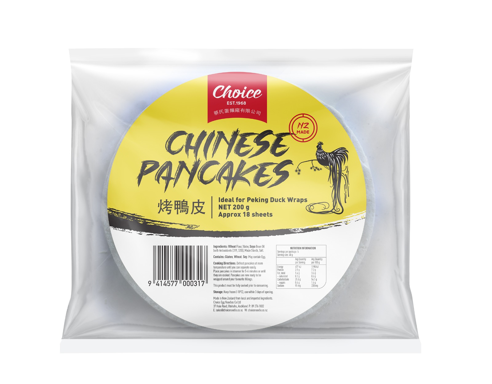 Cooking Directions: Defrost pancakes at room temperature until you can separate easily. Place pancakes in steamer for 5 – 6 minutes or until they are cooked. Pancakes are now ready to be wrapped around your favourite fillings.